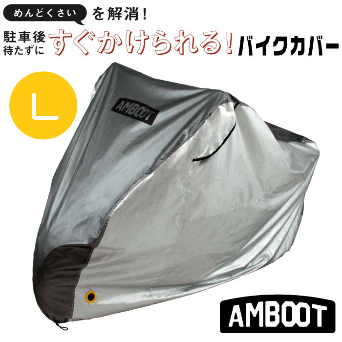 AMBOOT(アンブート)すぐかけられるバイクカバー『L・BOXサイズ』 耐熱 撥水 防水 防犯 厚手 300D 紫外線によるバイクの劣化対策 盗難防止 バイクの保護 雨よけ ほこりよけ