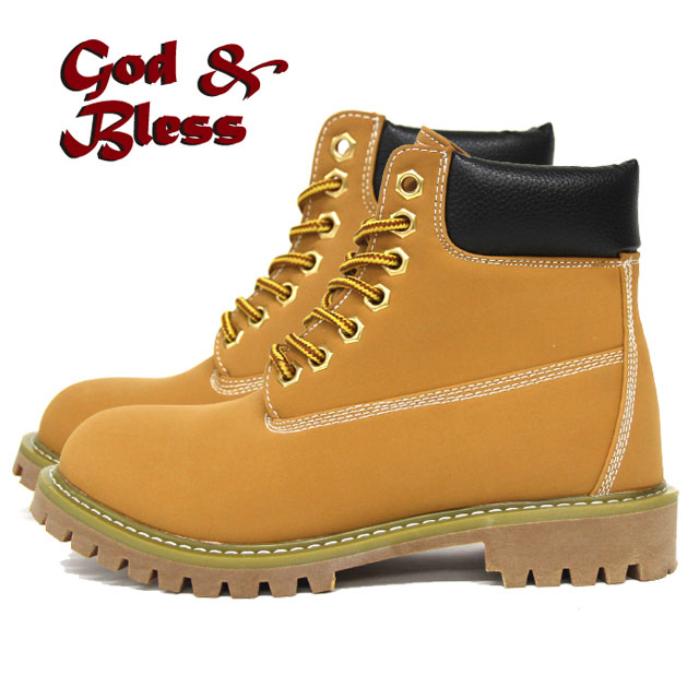 【GOD&BLESS】イエローブーツ GB-3126N ベーシック6インチワークブーツ・アメカジ 合皮 編み上げ ジップなし ショート丈