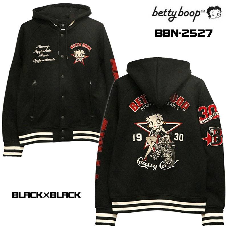 BETTY BOOP ベティブープ ロゴ刺繍 ボンディングスタジャン ユニセックス カラー:BLACK×BLACK (BBN-2527)