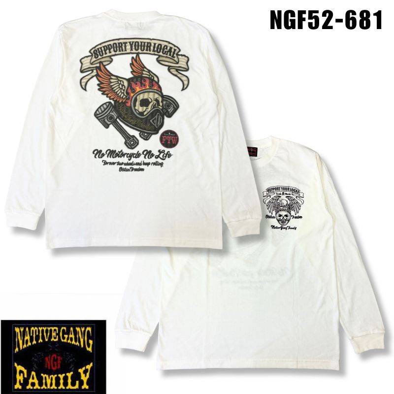 CHIGIRI|NATIVE GANG FAMILY NO MOTORCYCLE NO LIFE カラー:ホワイト ロンT 長袖 長袖Tシャツ (NGF52-681WH)