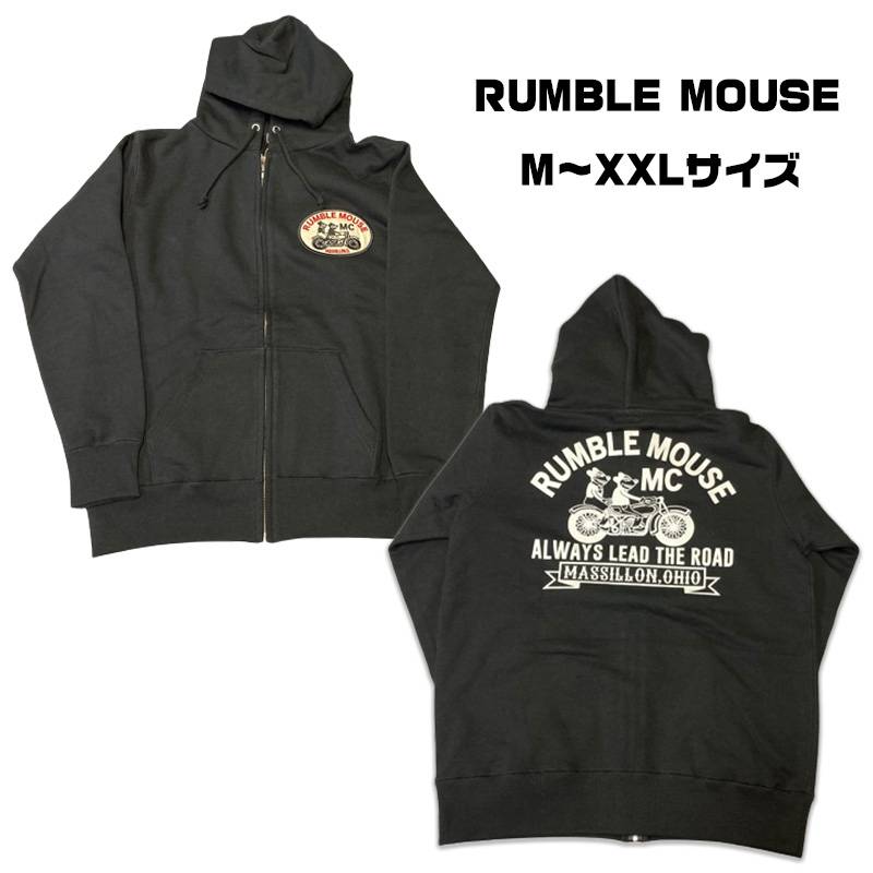 G&NGARAGE RUMBLE MOUSE ランブルマウス ジップパーカー パーカー アウター カラー:ブラック 裏起毛 微起毛 フリース