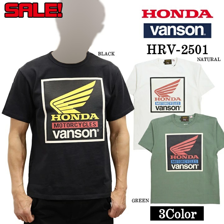 【セール!48%オフ!】HONDA × VANSON ホンダ バンソン コラボ 天竺半袖Tシャツ プリントTシャツ Made in USA 3色展開 (HRV-2501)