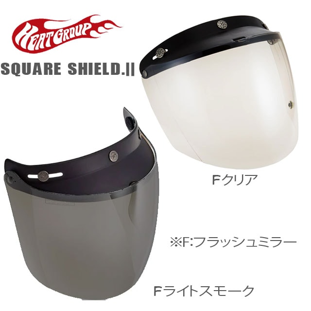 【HEAT GROUP】 SQUARE SHIELD. Ⅱ スクエアシールド2 マジックキーパー付 フラッシュミラー バイザー付シールド グースシールド 開閉式 ヒートグループ