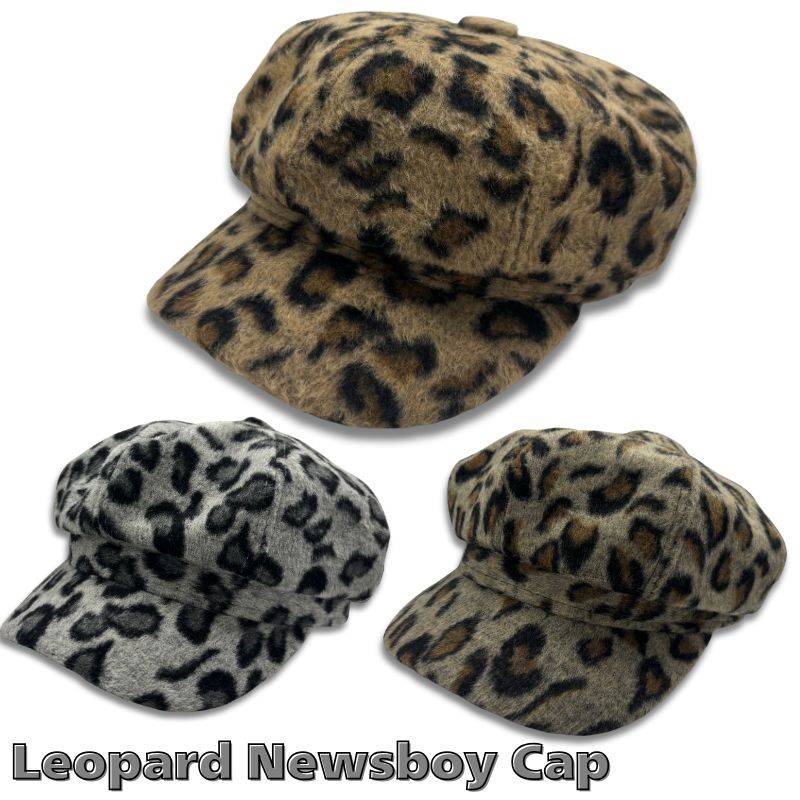 ニュースボーイキャップ 「Leopard」キャスケット 帽子 秋冬 ハンチング帽 ヒョウ柄 3カラー │ブラウン or グレー or カーキ │