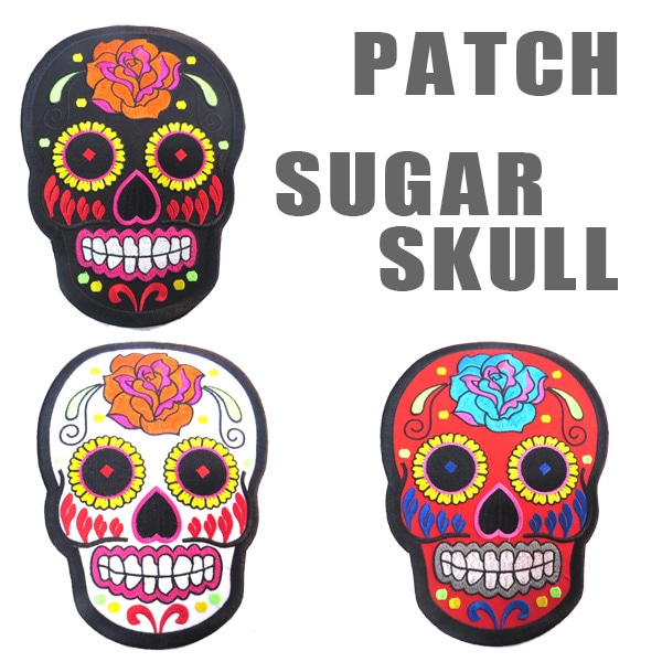 【刺繍パッチ】SUGAR SKULL シュガースカル 刺繍パッチ バイカー ワッペン
