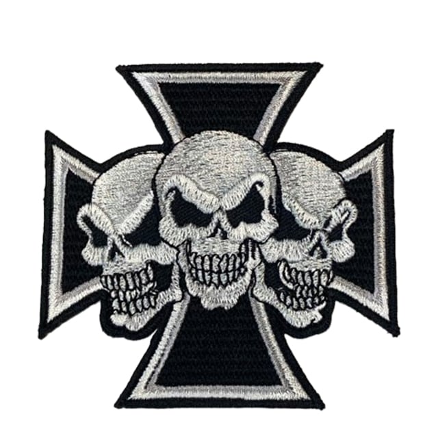 【刺繍パッチ】スカルクロス アイアンクロス バイカー ワッペン