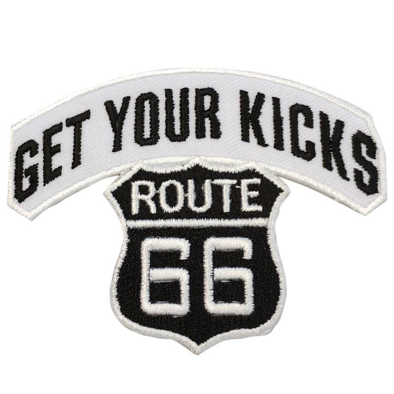 【刺繍パッチ】GET YOUR KICKS ROUTE 66 ホワイト/ブラック バイカー ワッペン ルート66 マザーロード