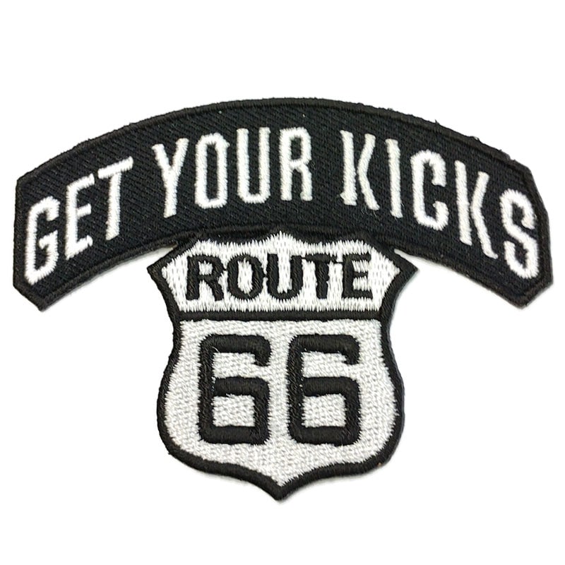 【刺繍パッチ】GET YOUR KICKS ROUTE 66 ブラック/ホワイト バイカー ワッペン ルート66 マザーロード