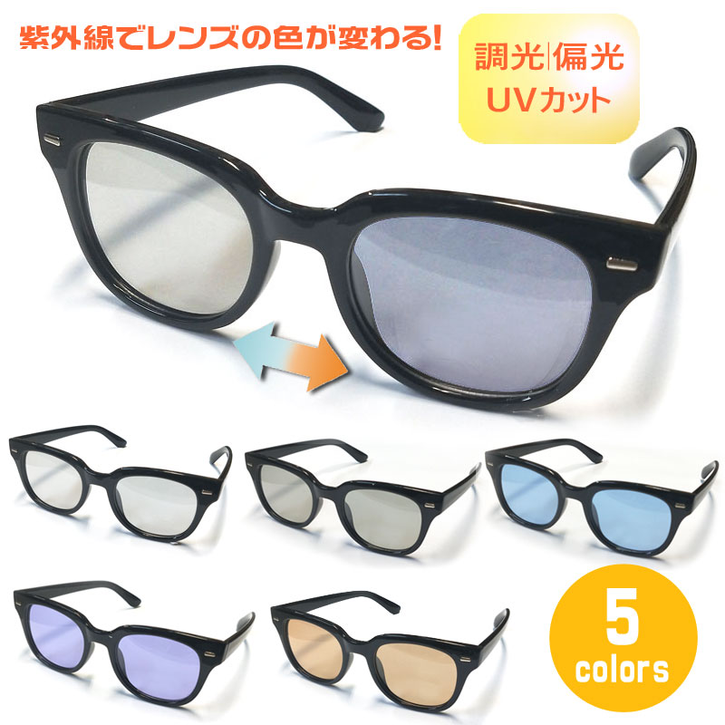 調光サングラス ウェリントン 偏光|調光 色が変わるレンズ|5カラー|紫外線 UVカット【TY2853PH】