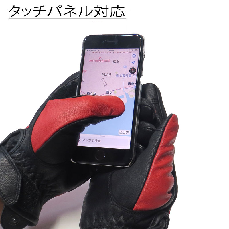 【ゆうパケ送料無料】MB 山羊革プレーングローブ|レッド|HGGP-06S-RED(スマホタッチ対応) モトブルーズオリジナル ライディング グローブ バイク オールシーズン用