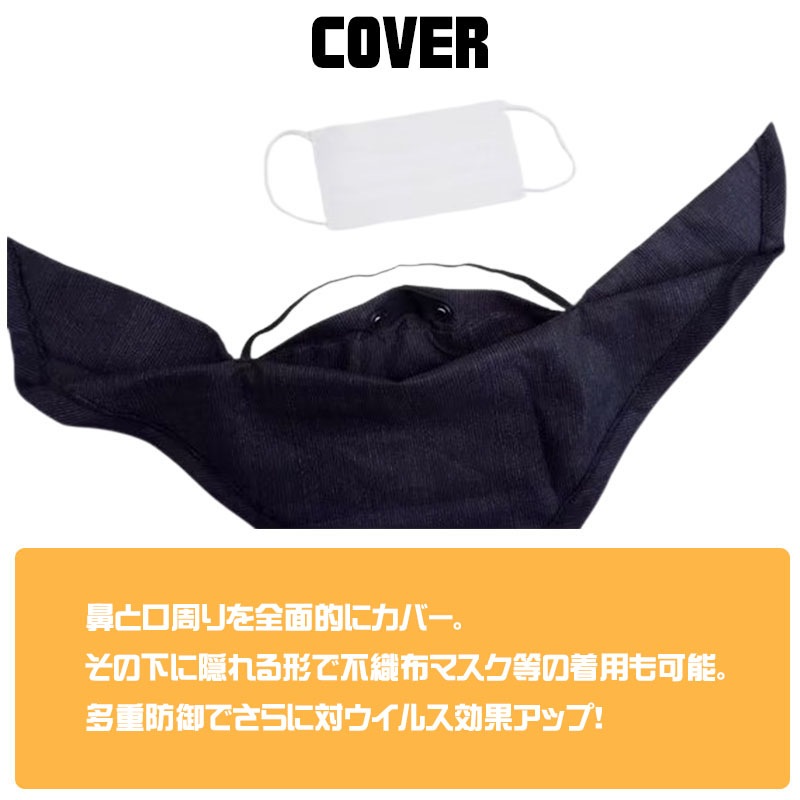 不織布マスク等を内側に重ねて着用すれば、ウイルス対策にも効果的。