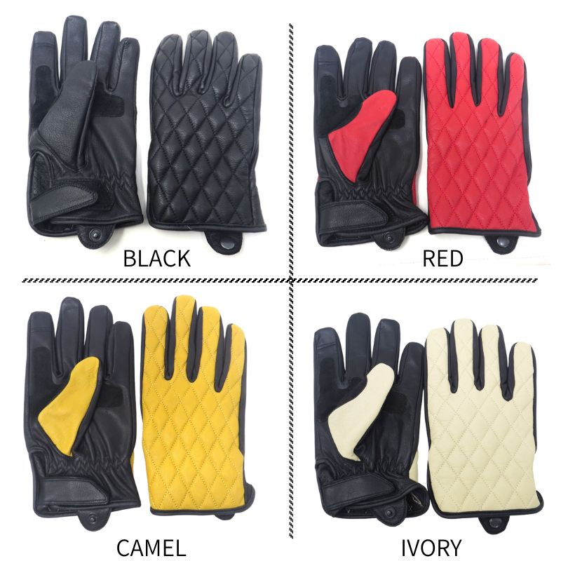 【ゆうパケ送料無料】MOTOBLUEZ 山羊革ダイヤステッチ プレーングローブ「DIA STITCH」MB-GAD1|4カラー| ダイヤゴナル 本革 スマホタッチ対応 オールシーズン用